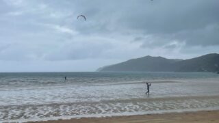 雨のち西風強くなる予報でカイトボード体験希望のイッシー 赤木名に入る風は今一でカイト操作もかなり難しいのですがそこはパラフライヤーなかなか上手です カイト地上での体験とボディードラッグの体験ができました(*^^*...