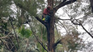 モクマオウの枯れて危ない枝を取り除く為にN美さん木登り 木登り練習し易いように剪定してくれました。ティーツリー 朝は「味の郷かさり」で行われているアマンデー市にK世子姉にあってきました。お元気でしたよ~(...