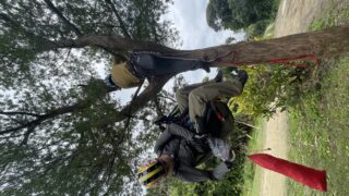 風強いのち寒冷前線通過予報なのでツリー練習です セッティングもちょうど木登りの練習になりますね セルフレスキューの練習も(^^)v