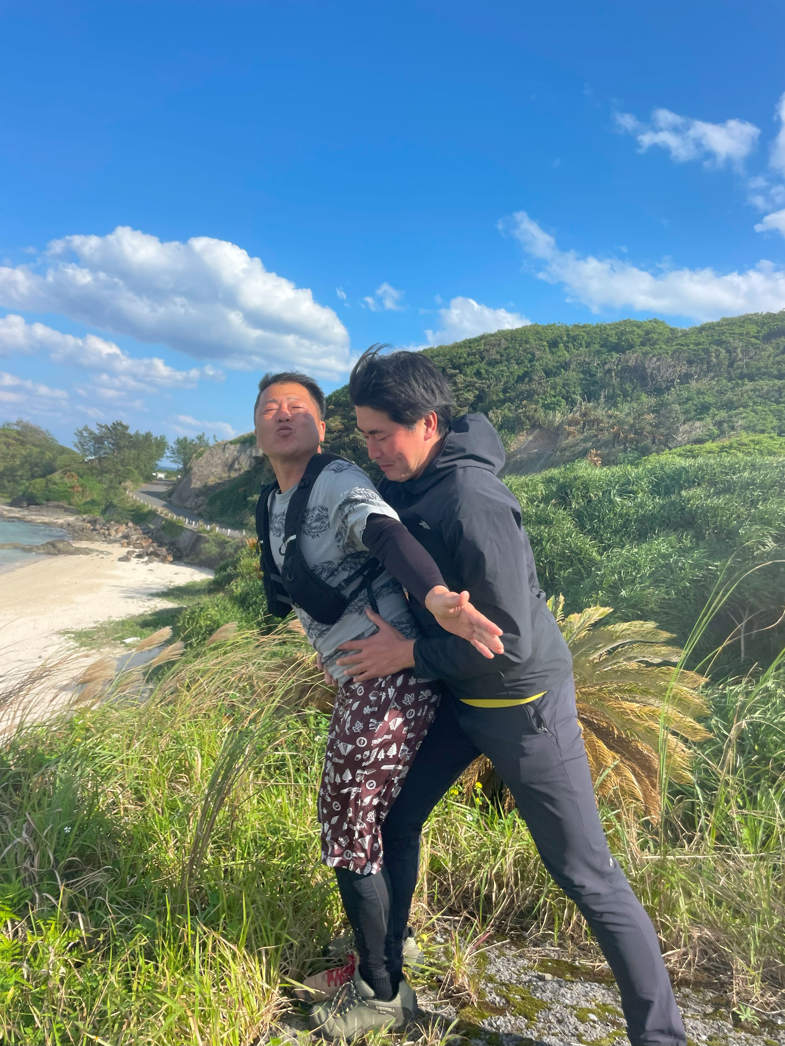 風強い!! パラグライダー無くても飛べそうじゃない?からの~~タイタニックごっこで楽しんでいました(笑