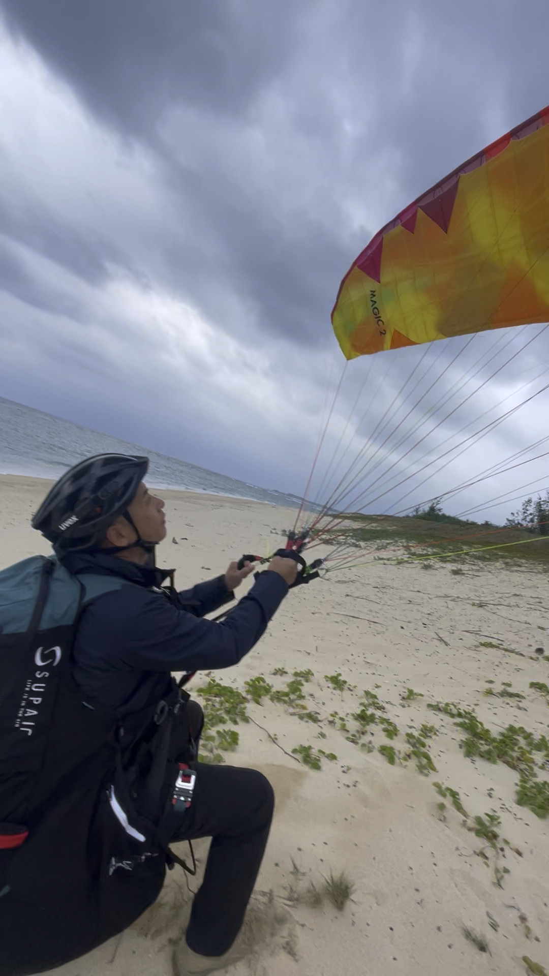 もう少し風が弱かったら高高度から飛ばせてあげたかったけれど、朝早く集合したのに既に風強し!!