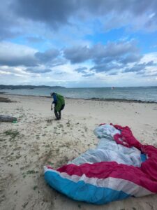 Mさんミニパラでしっかりとテイクオフ練習ができました。のちセルフビレイと片吊りした際の体勢立て直しの練習をしました(*^^*)
