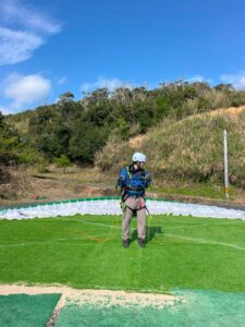 Mさんにとってランチャーはタンデムでも飛んだ事がないと仰るので、ソロフライト前にコースどりのイメージをタンデムで確認フライトです