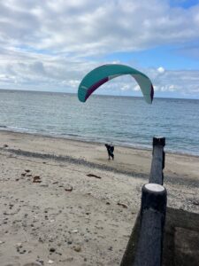 安木屋場は西風が入りだし、一気に強くなり始めているので急ぎテイクオフしてもらい