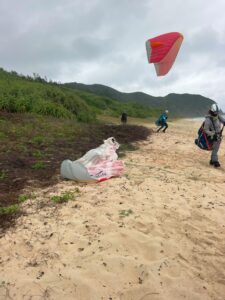 ミニパラ特訓(笑 #奄美大島パラグライダースクール #奄美大島パラグライダー Blog 2025.03.252025.03.14 風と雨の二重苦の予報に打ち勝つ?為に朝早くから集合!! ミニパラでグラハン練習です。ミニパラでも苦手な課題を克服できるんです♪ みなさん熱心でした(*^^*)