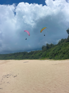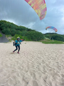 ミニパラのちレギュラーでソアリング♪ #奄美大島パラグライダースクール Blog 2025.07.182025.06.22 朝一は南風強くてミニパラでソアリングするか レギュラーでグラハン練習でしたが 午後からレギュラーでもソアリングできるほど落ち着いた風になりました。 今日からレッスン開始のMさん。まずは基礎の頭上キープから(*^^*)v