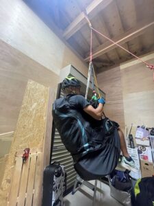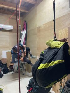 倉庫内ではツリーランした際の体勢立て直しの仕方を復習する方や、ツリーランからの脱出を練習する方も