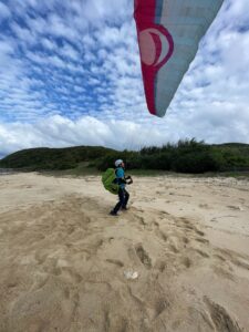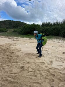 佐仁は通常のレギュラーパラグライダーでは強めなのでミニパラにてグラハンレッスン