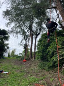 1本フライトしてからは土浜に戻ってツリー講習(今回は木登りがメイン)