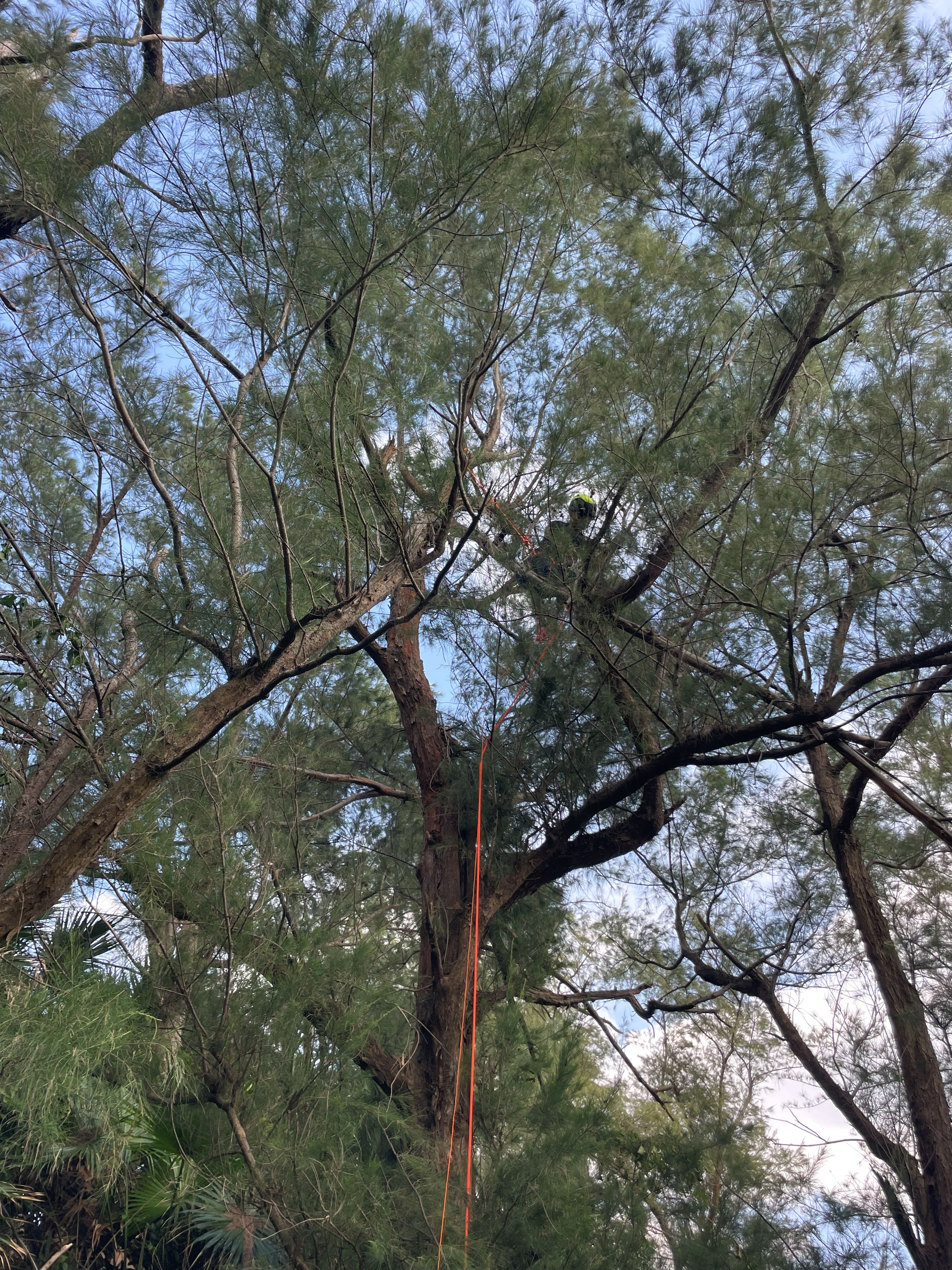 枯れていつ落ちてきてもおかしくない太い枯れ枝を木登りして落してもらいました!!