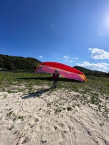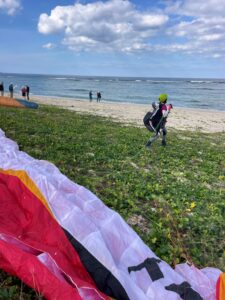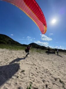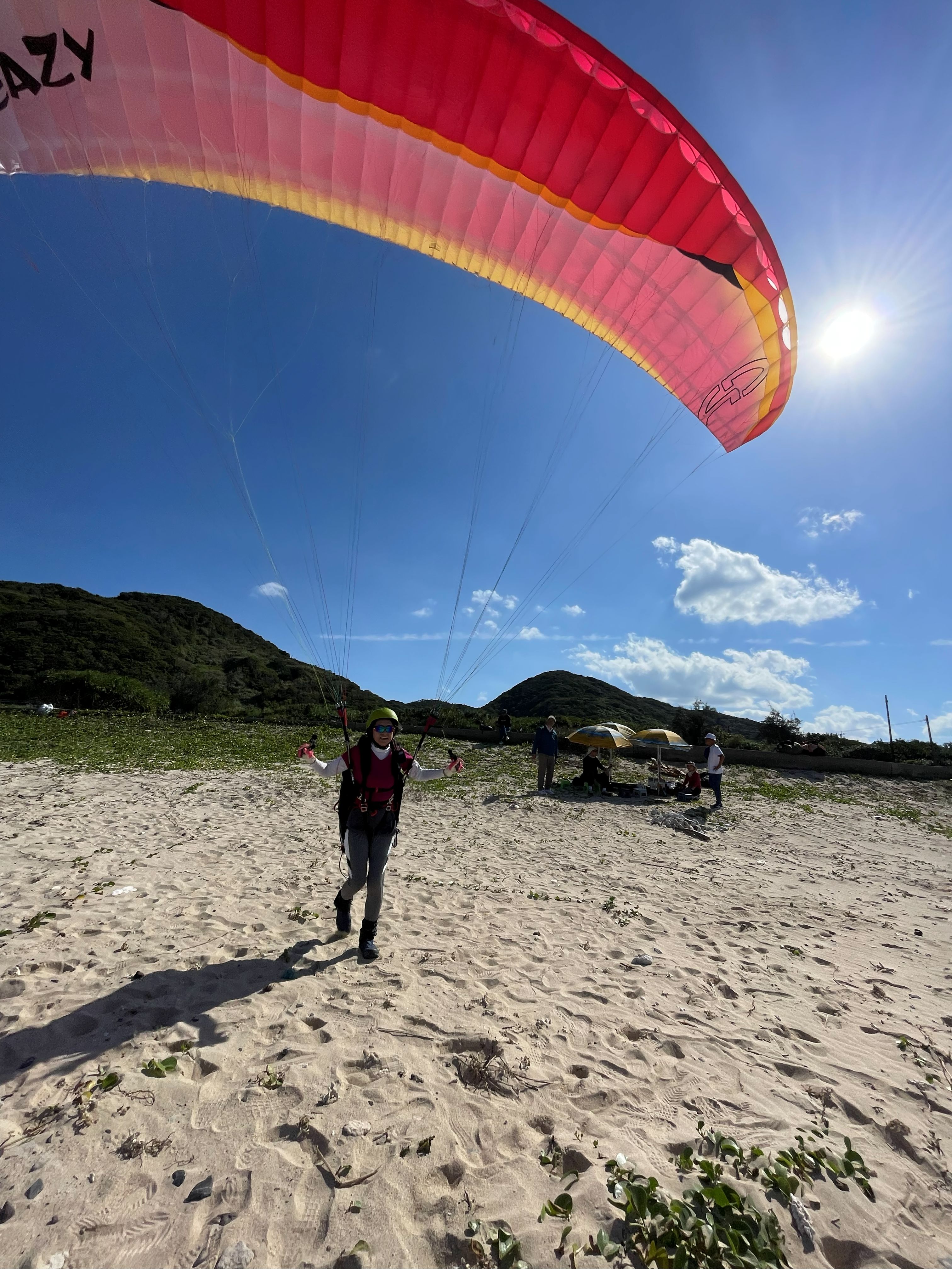 奄美大島パラグライダー 基礎練習のフロントライズアップ Blog 2025.11.27 久々にレッスンに参加してくれたのはNぴー(*^^*) 北西でちょっと風が弱めでしたが、段々と思い出し最後には頭上キープと 傾きの修正までしっかりと出来るようになってきました♪