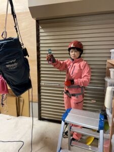 常連のN美さんと倉庫内でツリー講習