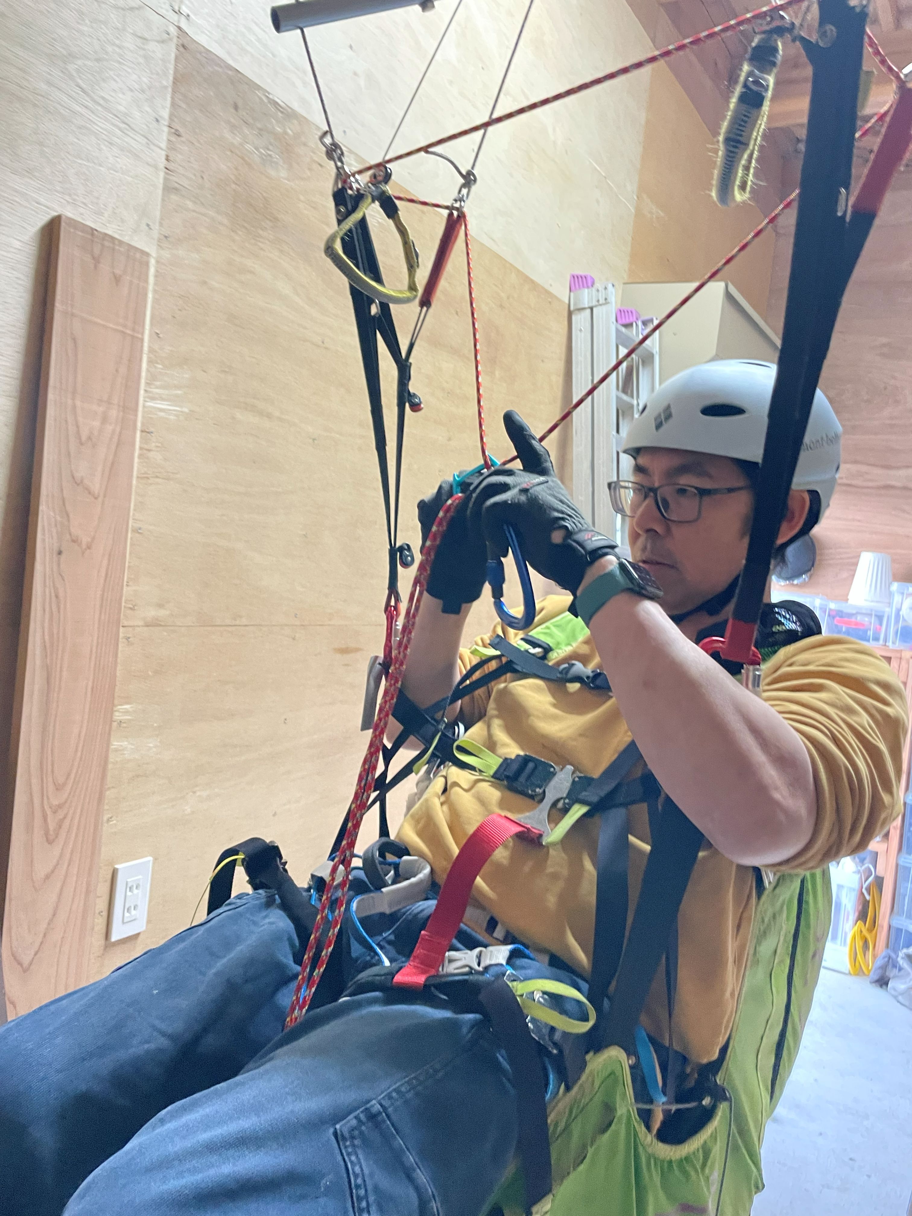 風強い日はツリー講習 Blog 2026.02.262026.01.28 風が強い時はツリー講習です エイトカンなど初めて触るMさんです ご自分のロープでご自分のエイトカンで降りる練習からスタートして最後にはご自分のハーネスから脱出練習もできました♪