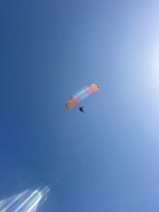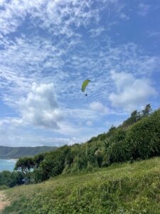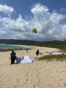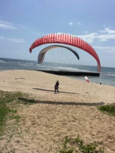 テイクオフ下の砂浜から斜面登りしてこないとソアリングの風に乗れないっっ