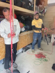 北風がびゅんびゅんだったのであいみ倉庫内にてツリー講習を開始