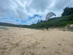 ビラミニパラレッスン♪ #奄美大島パラグライダー Blog 2024.07.022024.06.21 ビラが飛べるんだけど、本流の風はかなり西なので テイクオフに入る風は南西だけど荒れ気味の風 こんな時はミニパラでグラハン練習が一番有効でした(*^^*)