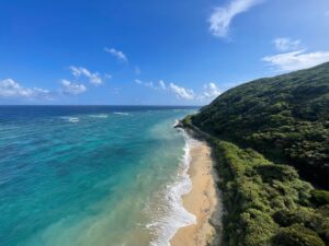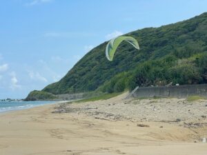 風がソアラブルで朝仁の砂浜まで楽に飛んでいけました