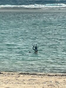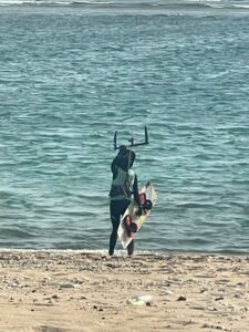 北東で強めな風なので久しぶりに笠利崎でY美ちゃんとカイト